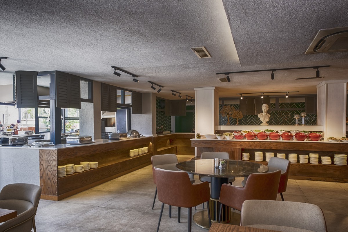 Otel binası içerisinde yer alan kapalı restoran, 150 kişi kapasitelidir. Fakat bu sayıyı aşan talep ve organizasyonlarda 250 kişi kapasiteye de ulaşabilmektedir. Merkezi klima sistemi (VRF) olan kapalı restoranımızda uluslararası ve yöresel yiyecekler, tamamı tecrübeli aşçı ve servis personelimiz tarafından hazırlanan açık büfelerde müşterilerimizin hizmetine sunulmaktadır.